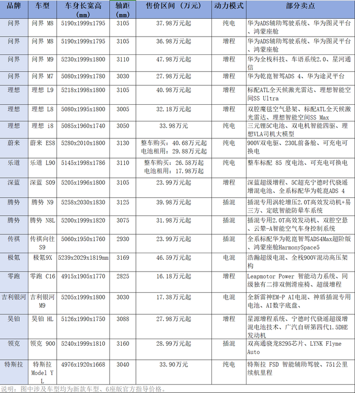 部分大六座SUV车型参数 时代周报记者制图大六座SUV琳琅满目,消费者如何选择?