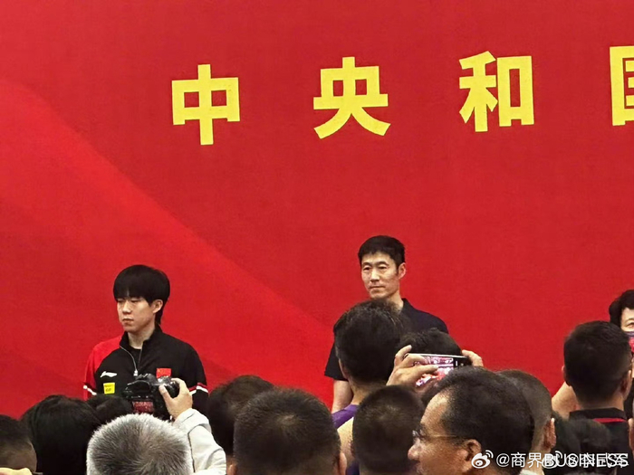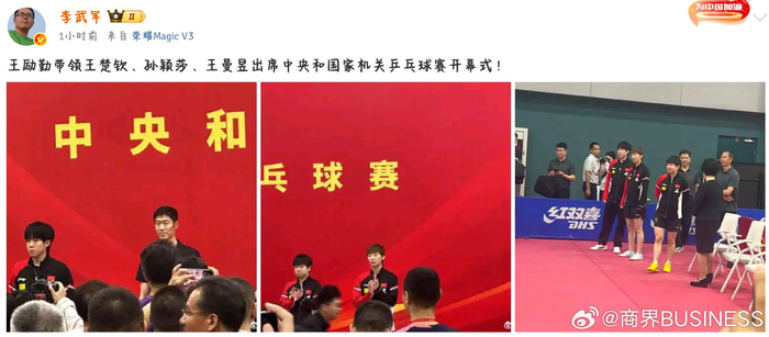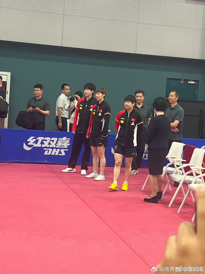 中国乒协主席王励勤携国乒主力队员王楚钦、孙颖莎、王曼昱共同出席了中央和国家机关乒乓球赛的开幕仪式。(央视记者 李武军)