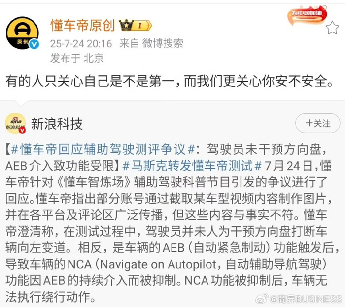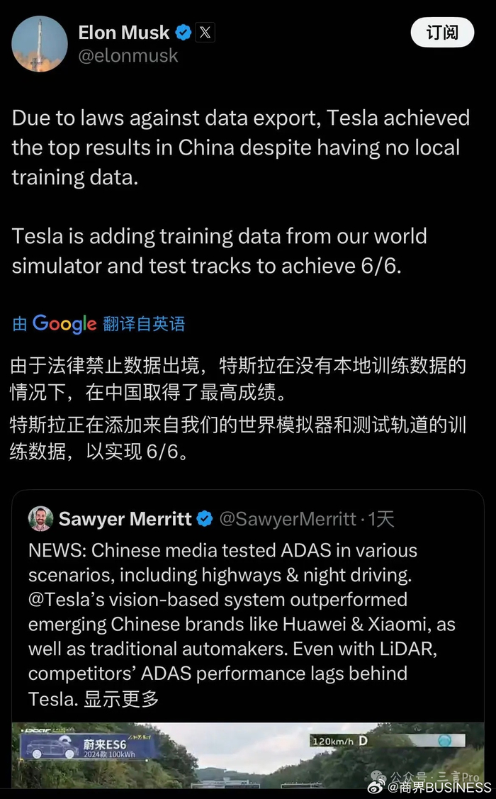 马斯克转发懂车帝测试结果,特斯拉获最佳成绩