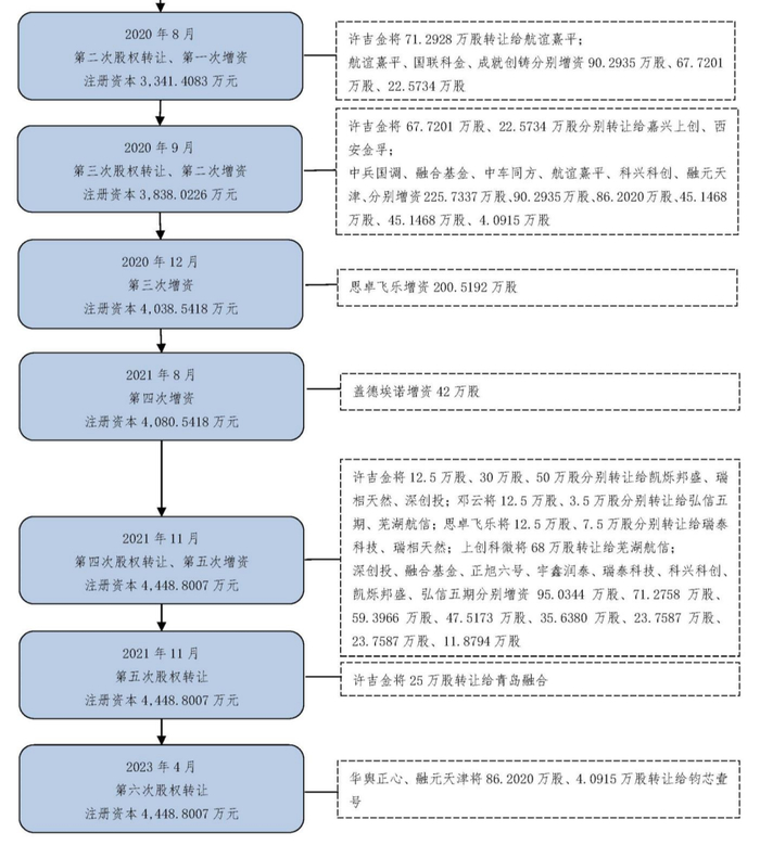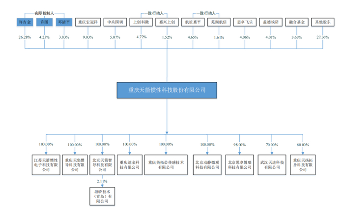 尽管后续投资者众多,天箭惯性创始人许吉金仍然通过老婆、儿子和一众亲戚,将控股权牢牢握在手里。