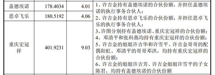 除了夫妻和儿子三人签订一致行动人,许吉金两个姐姐、老婆的哥哥等都在合伙企业中持有股份。