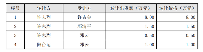 2005年4月时候,法定代表人从阳台运变更为许吉金,同时许志烈、阳台运出资额平价转让给邓清平、邓云。