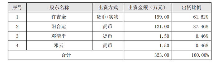 2005年7月,为了扩大经营,许吉金、阳台运、邓清平、邓云用货币和实物给公司注资。
