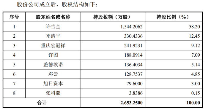时间来到2016年,公司改为股份公司,天箭惯性成立。重庆宏冠祥、盖德埃诺为持股平台,旭日资本、张科燕为外部入股,旭日资本货币投入79.6万元、张科燕为股权投入3.8386万元。