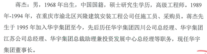 华宇集团公告还显示,蒋杰与蒋业华为亲属关系,截至信息披露之日,蒋杰未持有公司股份。