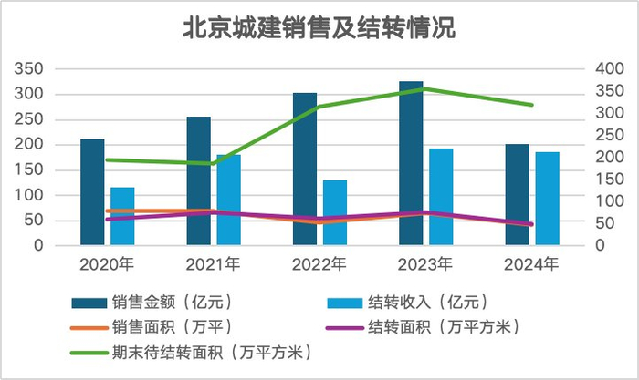 然而,2024年,北京城建却没能延续过往快速发展的走势。从销售表现来看,年内该公司的销售金额回落,实现202.72亿元,同比减少37.82%。