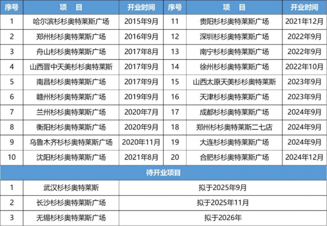 按照官方说法,2025-2026年,杉杉商业集团相继迎来武汉店、长沙店、无锡店的盛大开业,正式营业的奥特莱斯项目即将达到23座。