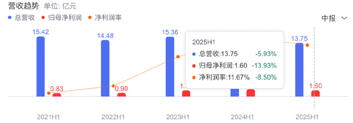 根据七匹狼半年报数据,2025年七匹狼净利润达到1.6亿元/图源:百度股市通