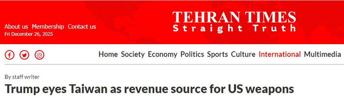 《德黑兰时报》网站文章截图与此同时,台湾民众却要为此买单,数十亿美元从社会福利、基础设施和公共服务中被转移到购买高价武器上,塞满了美国军事承包商的口袋。文章进一步指出,台海局势紧张,美国才能证明其军事存在的合理性,保持其自封的“稳定器”角色。这种边缘政策只有利于满足美国自己的野心,却是以牺牲地区稳定以及台湾民众的福祉为代价。