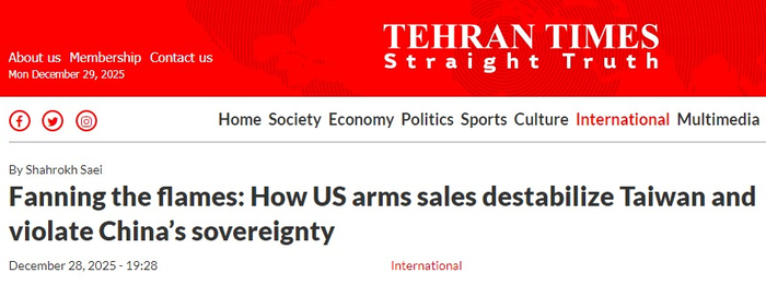《德黑兰时报》网站在另一篇文章中写道,美对台军售美其名曰是为了维护台海和平与稳定,但这样的说辞根本站不住脚。在敏感地区投入武器灭不了火,只能是“煽风点火”。民进党当局愈发沉迷“以武谋独”的危险幻想之中,台湾成为美国操弄地缘政治的一枚棋子,其安全被押在美国的战略博弈上。