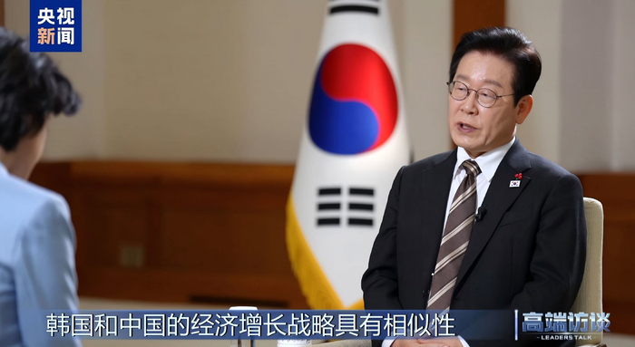 韩国总统李在明接受总台《高端访谈》栏目专访视频截图而在访华前夕接受总台记者专访时,李在明总统表示,韩中之间的经济合作有必要重构水平合作结构、平等协作的关系。他特别提及在人工智能、高新技术产业等领域,打造有利于双方发展的合作型经济关系。