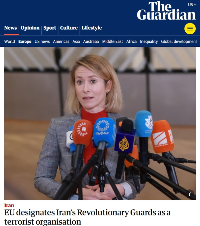面对美国的欺压,欧洲似乎在反抗。但当美国威胁的对象变成伊朗,欧洲又主动当起了帮凶。欧盟外交与安全政策高级代表卡拉斯日前宣布,欧盟成员国外长作出“决定性举措”,决定将伊朗伊斯兰革命卫队列入“恐怖组织”名单。