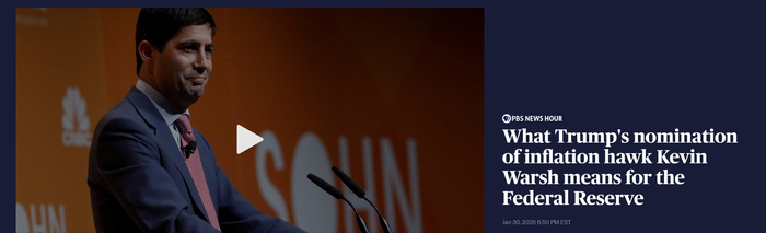 外媒报道截图但同时也有观点指出,鉴于沃什在2006年至2011年担任美联储理事期间一直支持相对紧缩的货币政策,被普遍视作“鹰派”而非“鸽派”。他领导下的美联储会在多大程度上给白宫“打配合”,仍有待观察。