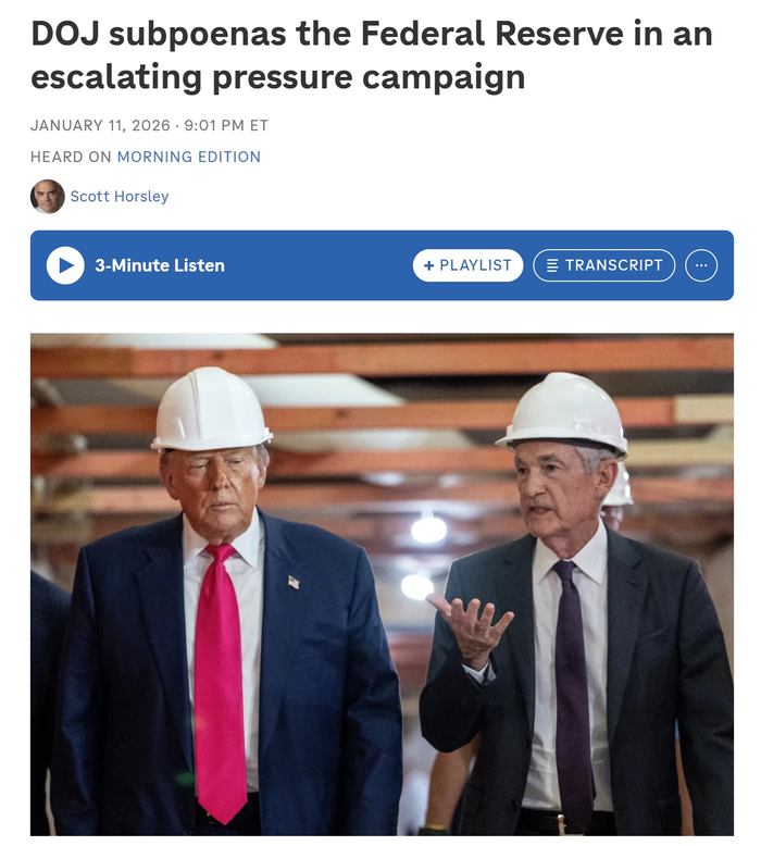 外媒报道截图·美国司法部正式对鲍威尔本人启动刑事调查,指控其在关于美联储大楼翻修工程的国会听证中涉嫌提供虚假证词。