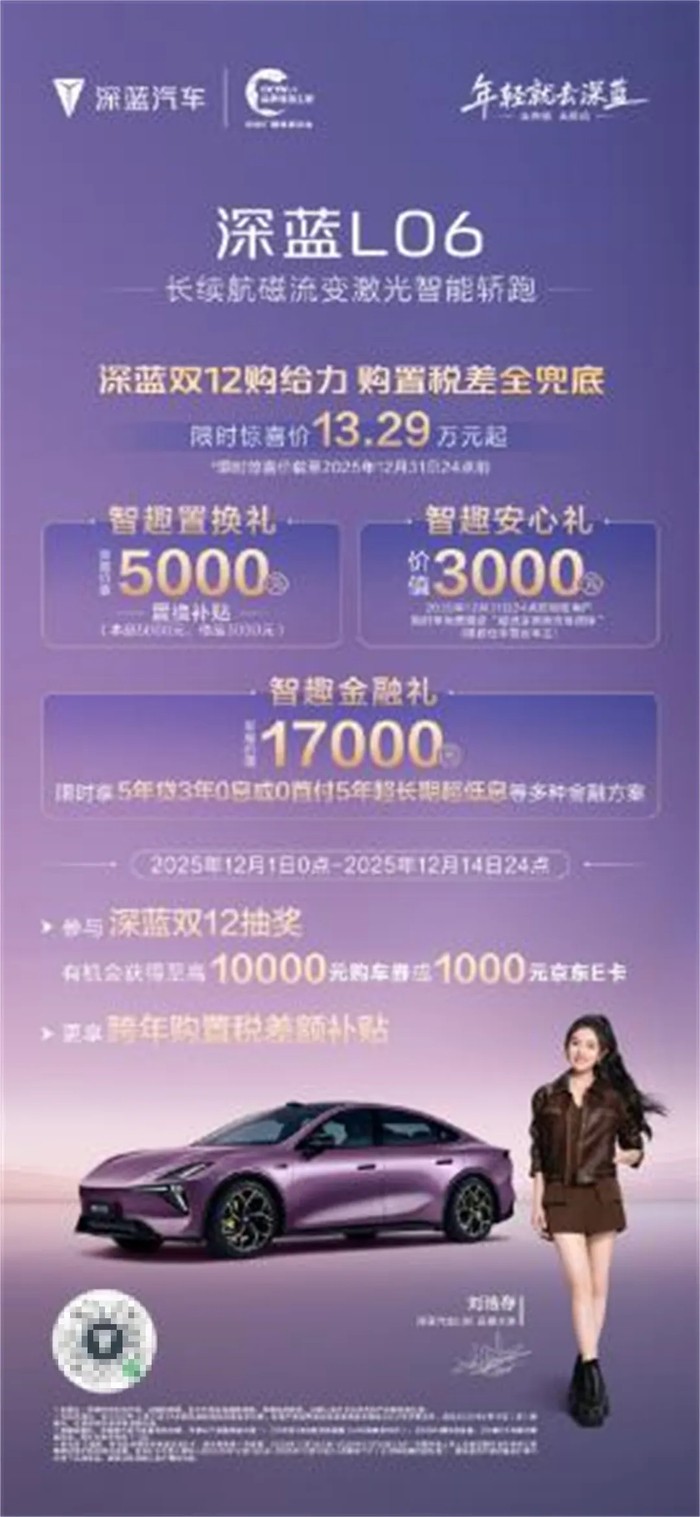 无论是极具吸引力的购车福利,还是在辅助驾驶、驾控、智能、安全、续航等方面的越级表现,深蓝L06都完美诠释了“同价高配、同配低价”的核心竞争力。国补红利窗口期已开启,新年福利限时放送!想要在新年入手高质价比智能轿跑的消费者,不妨抓住此次机遇,锁定深蓝L06,新年焕车,即刻冲刺!