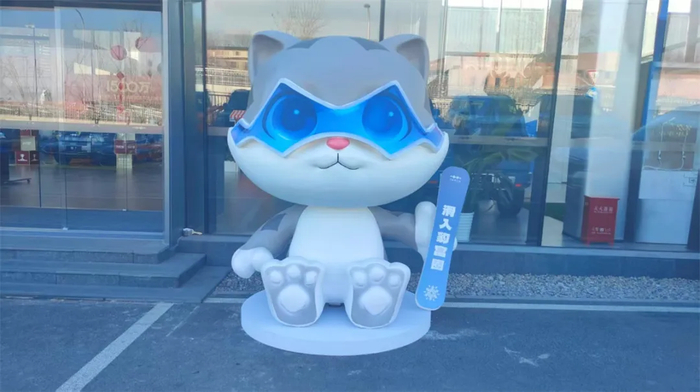 刚到4S店还没有进门,趣味科技便被门口那只可爱的方程豹吉祥物“豹豹”吸引了目光。它手上的那句口号“滑入豹富圈”更是让人忍俊不禁。
