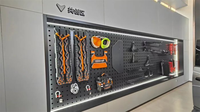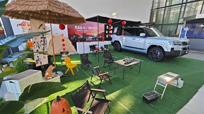 在越野文化展示区,可以看到帐篷、茶几、折叠椅、烧烤架、茶壶、电热炉等琳琅满目的户外用品,令人仿佛置身于越野途中的小憩时光。
