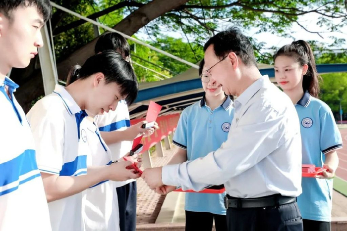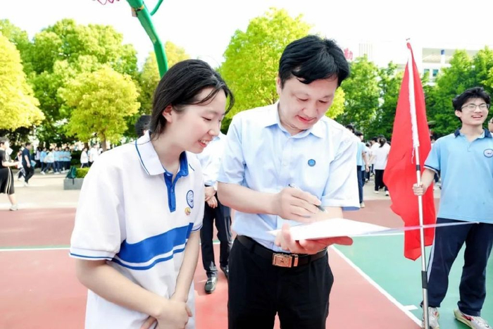 校长张天佑在赠言中从高考、友谊、未来三个维度勉励毕业生用清醒之眼拭方向,以勤勉之足量山河,青春无悔,奋勇向前,祝福四十七中每一位毕业生在与时代双向奔赴的伟大征程中,行稳致远,把青春故事的每一张每一节都写好,给人生以力量,给他人以温暖,给时代以助力。张校长同时寄语缘聚在平安大道6号的莘莘学子,你们是母校永远的的牵挂,四十七中是四七学子永远的心灵家园。