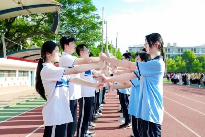 离别的时刻已至,新的征程正在开启。篮球场边,高一高二的学弟学妹们已整装待发,全体领导和老师为毕业生送行助威。四七学子带着四七精神的烙印,携着师长亲友的祝福,在时代的山海中扬帆启航!