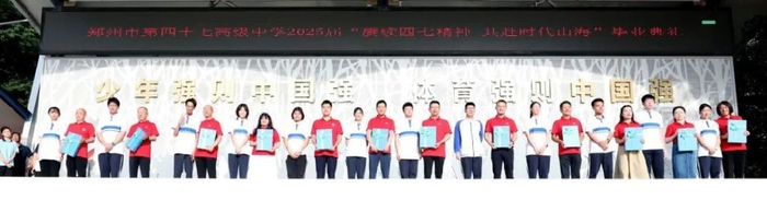 长风浩荡启新程,骊歌未央踏浪行。2025年6月5日,当初升的朝阳洒满校园,郑州市第四十七高级中学田径场上旌旗招展、青春飞扬。2025届"赓续四七精神 共赴时代山海"毕业典礼在庄严而热烈的氛围中举行,学校党委书记叶小耀、校长张天佑等校领导与全体师生、家长代表共同见证了这一难忘时刻。