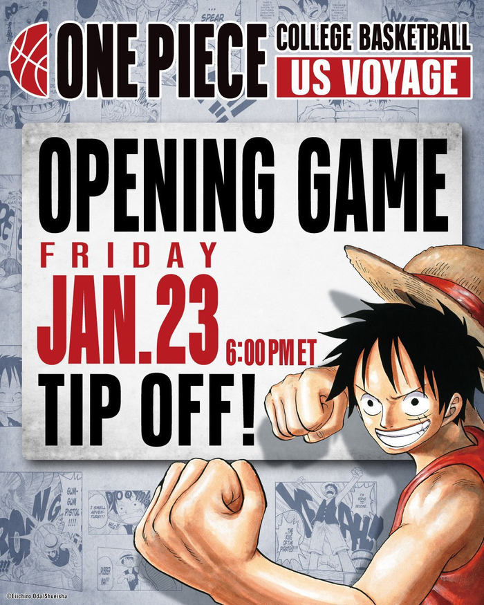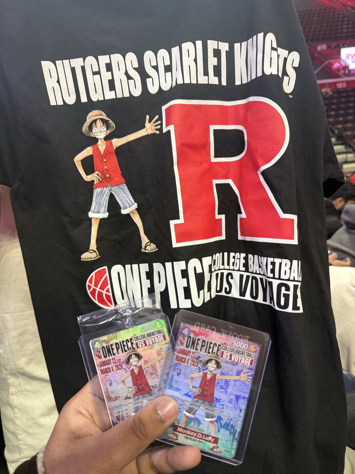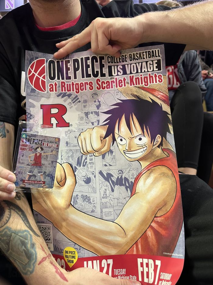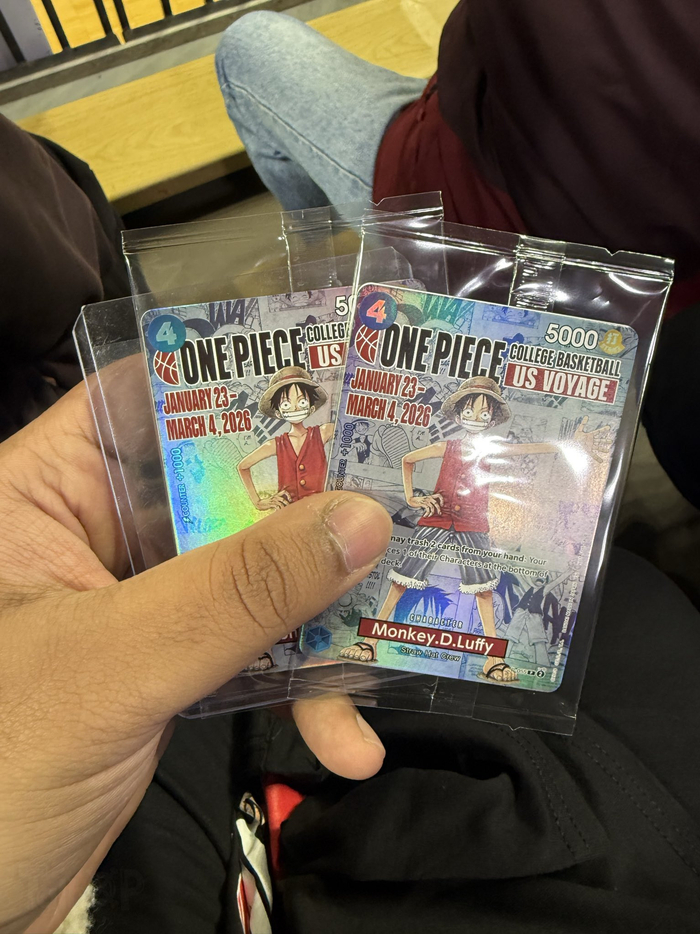 海贼王×美国大学篮球比赛巡回演出现场照片。限定路飞卡牌惯例抢疯了。