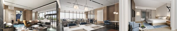 酒店设计将品牌的"简约之美"融合进建筑内饰细节,中性色系营造出淡雅宁静的氛围。大堂创新布局,集前台、商务、社交、休闲等功能于一体,流畅的动线设计带来高效便捷的入住体验。酒店拥有150间兼具舒适度与功能性的客房及套房,内饰简约自然,均配备舒适床品、55寸液晶电视机、多功能书桌、免费高速无线网络等便利设施,满足宾客商务与休憩的多元需求。此外,全景落地窗设计让宾客在房内即可畅览都市景观。