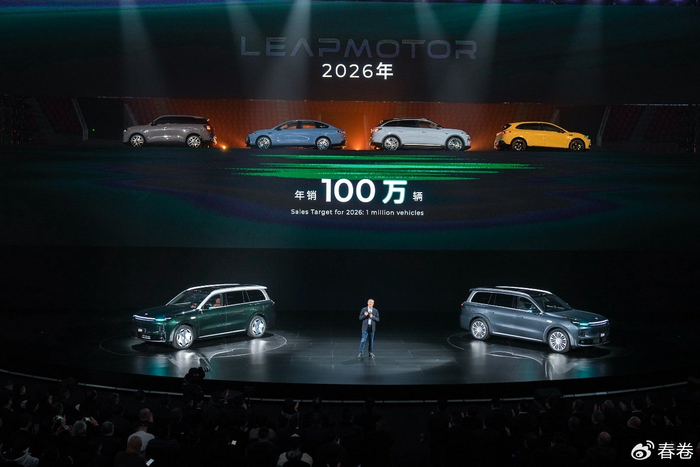 "2015年零跑刚成立的时候,我们就给自己定了一个目标:成为世界级的智能电动车企。零跑现在的能力,零跑现在的技术储备,零跑未来的产品方向,我们完全有希望实现这个目标!"朱江明在发布会上提出,零跑的长期目标是成为年销400万辆的世界级车企,并将2026年定为"百万辆突破年",向年销100万辆发起全面挑战。