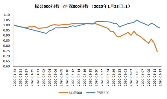 在采访过程中,董宝珍提出了一个值得思考的现象,从疫情对中国和美国实体经济的冲击来看,在目前阶段,显然是对中国的实体经济冲击更大,但为何美国的证券市场“崩盘”了?中国证券市场跌幅很小?