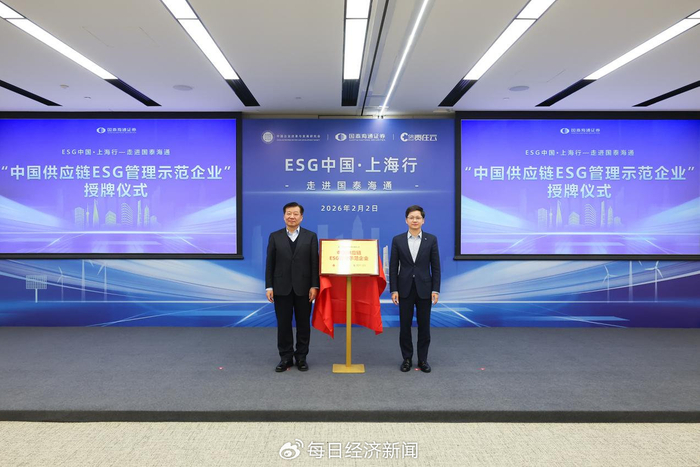 鉴于国泰海通在推动自身及供应链绿色管理方面的系统工作和显著成效,中国企业改革与发展研究会授予国泰海通“中国供应链ESG管理示范企业”称号。