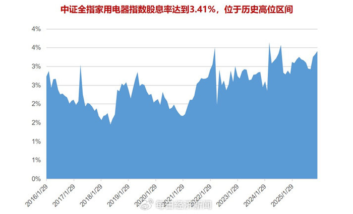 家电行业股息率位于近10年高位