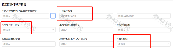 不动产销售备注栏必填内容包括【不动产地址】【面积单位】【跨地(市)标志】。