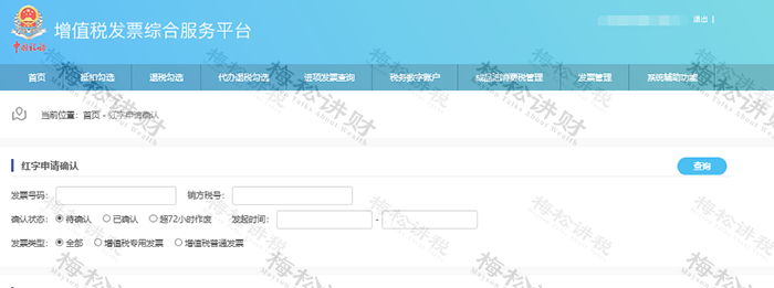 (1)在菜单中依次选择【发票管理】—【红字申请确认】,进入如下界面。