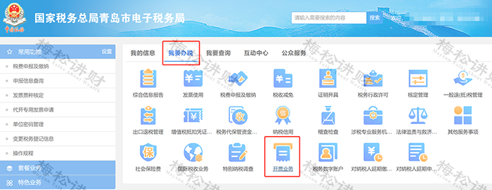 一、登录电子税务局,【我要办税】——【开票业务】。如下图: