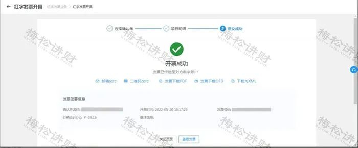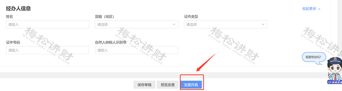 五、信息填写完毕后,确认无误,选择【发票开具】即可。