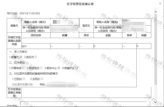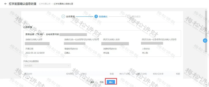 (6)在弹出窗口中查看红字发票信息确认单的数据是否正确,向下滑动竖型条,进入界面。