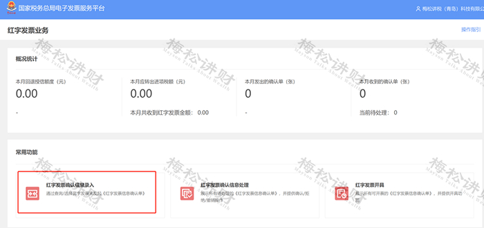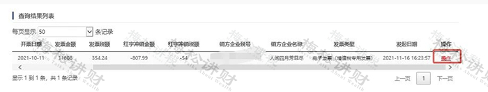 三、《确认单》提交成功后,选择【红字发票开具】,点击对应的《确认单》,即可开具红字发票。如下图: