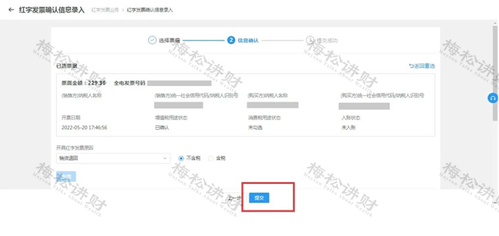 三、在页面点击【选择】,将选中的蓝字发票信息自动带入到页面。