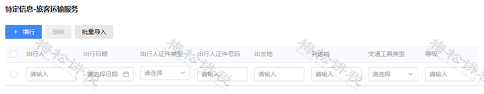 旅客运输服务没有必填信息,纳税人根据自己的需求填报“出发地”、“到达地”、“交通工具”等信息。