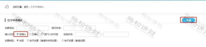 (2)选择“待确认”,根据发票信息输入发票号码和销方识别号,点击【查询】。