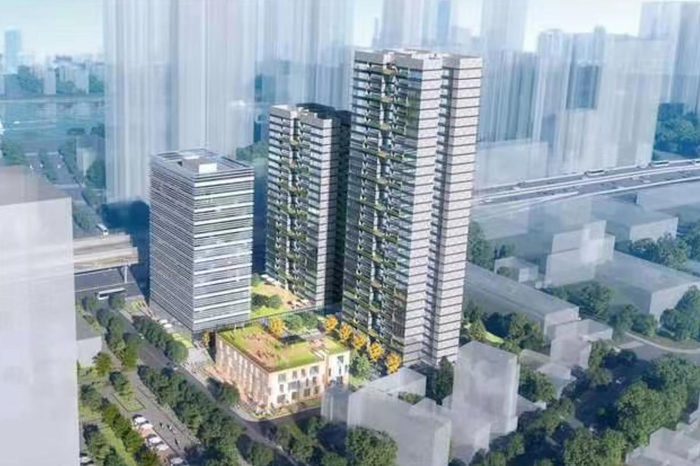 规划优化了片区空间形态。避免连续板式“屏风楼”,采用点式疏朗的建筑空间布局,预留规划调整范围与内环路高架之间的视线通廊。扩大裙房与南岸路的建筑退距,拓宽街道步行空间缓解高架桥消极影响,同时保持首层沿街界面的连续性,营造活力的商业界面。住宅塔楼采用公建化立面,协调周边办公建筑界面形成整体的城市风貌。