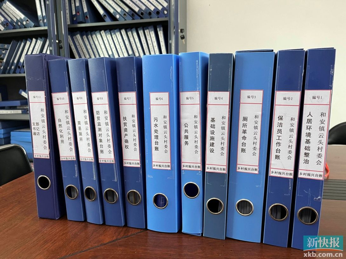 云头村乡村振兴台账资料。谢加亮/摄驻和安镇工作队表示,将继续本着“乡村振兴驻镇帮扶工作开展到哪里,档案工作就延伸到哪里”的原则,扎实做好工作资料收集、整理和归档等各项工作。