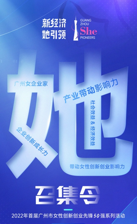 为展现湾区女性的时代风貌和创业品格,挖掘巾帼榜样,激励广大女性创业者不断前行,广州市妇联与广州市天河区人民政府联合推出“新经济 她引领 首届广州市女性创新创业先锋50强”系列活动,面向广州市新经济领域女性创业者,征集推荐优秀创业女性榜样代表,摹画她风采,讲好她故事,树立她榜样,培育她力量。