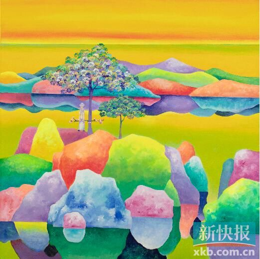 这次展出的近20件作品,部分试图在全球多元的文化语境中重拾山水精神,通过简单山石形体和丰富的色块和平静的构图创作出让人耳目一新、愉悦无斁的艺术体验。
