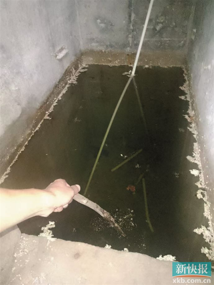 业主称地下室内有两处空置区域注满了水,且完全没遮挡。清远检测院: