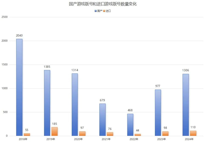 据GameLook统计,2024年全年,国家新闻出版总署(下简称版署)共下发新游戏版号数为1416个,其中,国产游戏版号1306个,进口游戏版号110个。版号发放总数同比增长32%,是2022年总量低谷期的2.75倍,已经回到了2020年的版号发放量水平。