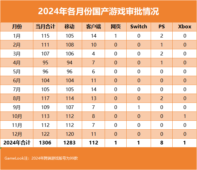 从版号发放的情况不难看出来,很多厂商的旗舰游戏采取跨平台策略,过审跨平台游戏从2023年的79个增至2024年的110个,同比增长近40%。比如《黑神话:悟空》本身是跨PC和PS端产品,今年上线的《绝区零》《无限暖暖》等多款游戏覆盖了移动、PC、PS主机多个平台。