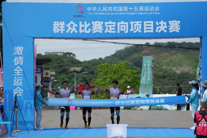 新快报讯 5月8日上午,第十五届全国运动会群众赛事活动定向项目决赛在美丽的“中国荔乡”茂名启幕。经过激烈的比拼,十五运会群体赛首金在中午产生,来自广州的李卓业与队友唐建达、唐潇一起摘得男子定向接力赛的金牌,这也是十五运会群体赛事的首枚金牌。