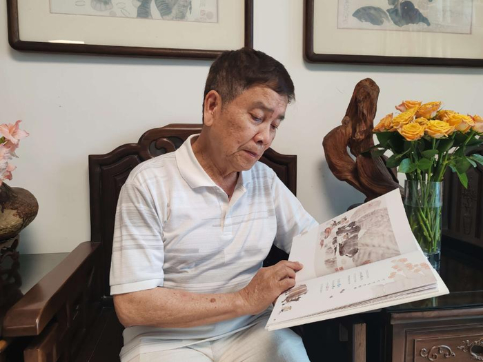 这也许就是命运的安排,梁培龙注定与儿童画结缘,几十年如一日地践行着“为小孩服务”的理念,画作的主题绕不开儿童和动物,有他儿时所经历的,也有他在日常观察到的,他也时常认为,“童趣”可以通过画作的细节去呈现的,比如,梁培龙曾画过一张掏鸟窝,那是小时候他和朋友们的经历,“以前的小朋友很调皮,又没什么可以玩的,就去掏鸟窝,现在这种情况就觉得破坏环境,所以我就画小孩拿着个小苹果给小鸟吃,题材就完全变了,一个是破坏,一个是爱护。”他在画中传达的不仅是童趣,更是要爱护自然,这就是细节带给我们的不同感受。