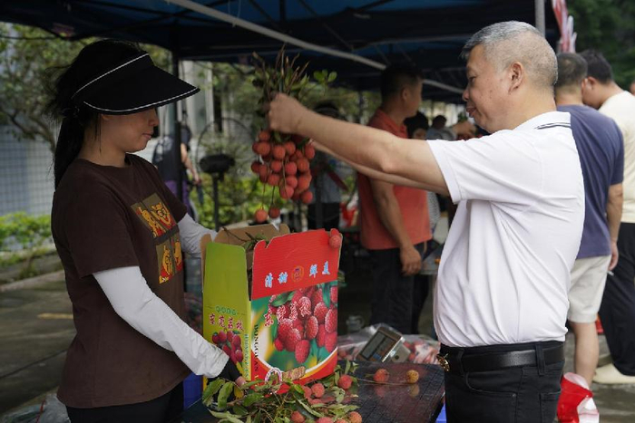 新快报讯 又是一年荔枝季,荔枝垂红溢甜香。踏入6月,东莞市迎来繁忙的荔枝销售期。为全力配合做好东莞市2025年荔枝产销工作,擦亮“高端荔枝出东莞”标杆品牌,助力实现“百千万工程”三年初见成效,南城供销社以“供销助‘荔’,联农带‘荔’”为目标,主动谋划荔枝采摘与供销集市活动,因地制宜、“以荔为媒”聚民心、谋共富,积极发挥市级网络资源和助农服务平台优势,加强与相关职能部门、社区和荔枝种植户多方联动,充分利用水濂、蛤地社区资源禀赋,积极开展配套服务,拓宽销售渠道,延长产业链。在此基础上,南城供销社全力推进今年的荔枝购销工作,以举办东莞荔枝供销蛤地集市为契机,让荔枝等“土特产”成为带动农民增收、促进乡村全面振兴的重要引擎。