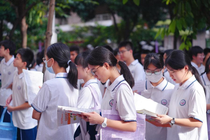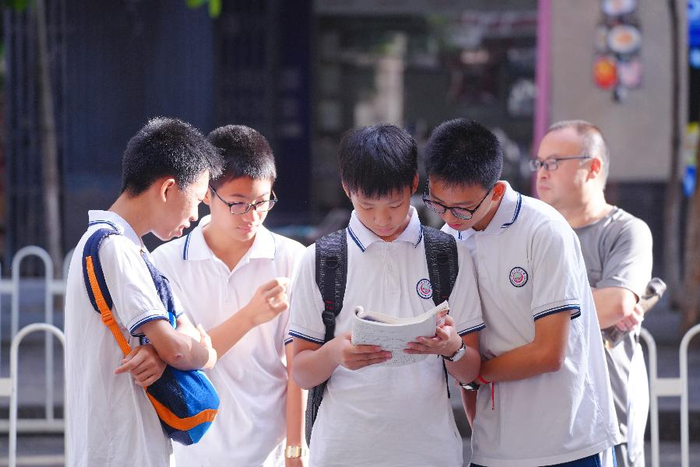 6月30日,广州中考语文科目开考前,天河中学考点的考生在进行最后的复习。(新快报记者郭思杰/摄)语文:突出学习可视性,思维流程外显
